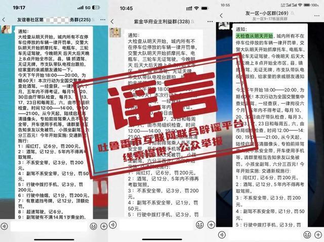 近日,在即时通讯平台有部分网民转发“即日起,交警将在全市范围内抓酒驾、无证无牌、车辆违停等,市支队带队电视台跟拍”的相关信息,引发网民关注。 经向相关部门核实,该消息为虚假谣言信息。通过网络搜索发现,此类谣言在全国多地传播且相关部门已辟谣,属于典型的“旧谣新传”。请广大网民严格遵守相关法律法规,立即停止传播扩散,做到“不造谣、不信谣、不传谣,共同营造清朗的网络环境。 网信部门提醒 网络空间不是外之地,针对网上各类违法违规行为,网信部门将联合公安机关予以坚决打击,依法追究相关法律责任。 来源:新...